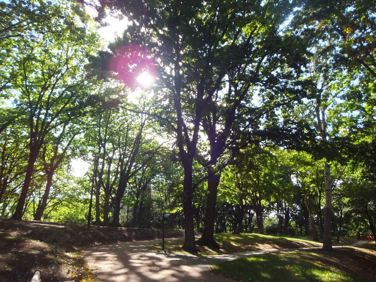 住宅地に囲まれていますが、丘陵の公園で、公園内はアップダウンがあります。