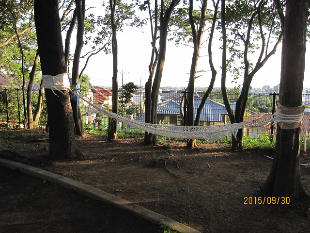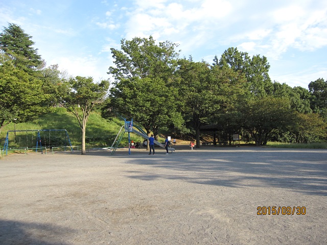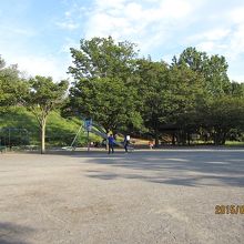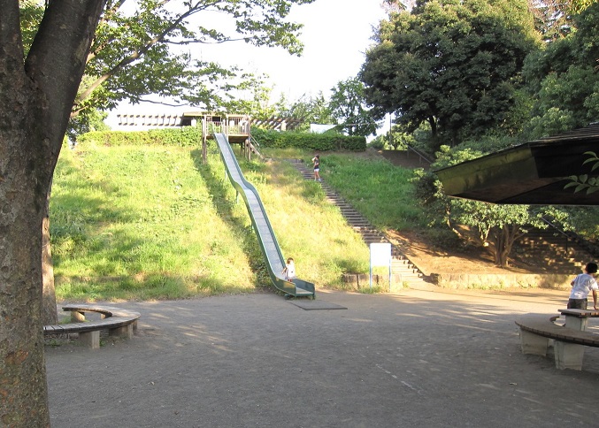 「新石川公園」は、この新しい「新石川」の中心にある公園です。多摩丘陵の面影を残す林の中にある緑豊かな公園で、斜面を利用して、グランドが2段に広がり、斜面に沿った長い滑り台などがあります。