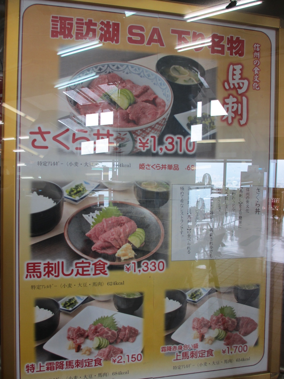 諏訪湖が眺められるSAです。下りエリアには温泉施設があります。朝10時から575円で温泉に入ることができます。さらにレストランでは馬刺し定食やさくら丼を食べられます。朝食バイキングもやっていて、朝7時から大人960円、子供670円で食事をとることができます。また諏訪湖が眺められるところには恋人の聖地なるものがあり、それぞれの思いを絵馬に書いて残しています。