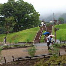 飛騨高山から白川郷へバスで移動し、白川郷のバス停を降りるとすぐ横にこの公園があります。茅葺の観光案内所がありますので、ここで観光マップを貰うと便利です。村営の駐車場もあるので、白川郷を訪れる観光客は、ほぼ全部この公園を訪れることになると思います。ここからであい橋で荘川を渡ると世界遺産の白川郷の中に入ります。