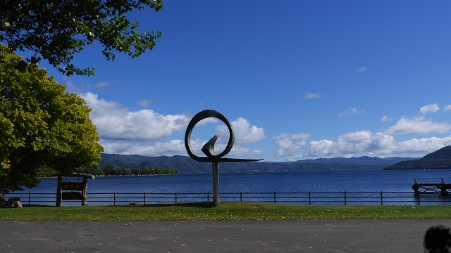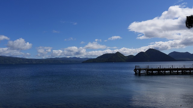 洞爺湖を様々な角度から眺めようと一周したときに立ち寄る。湖岸ではキャンプが張れるようでシルバーウィーク期間中ということもありにぎわっていた。いつもいる洞爺湖温泉街の対岸上の位置にあるのか正面奥に温泉街がかすかに見える。洞爺湖は晴れた日、湖面の色がきれいだと思う。