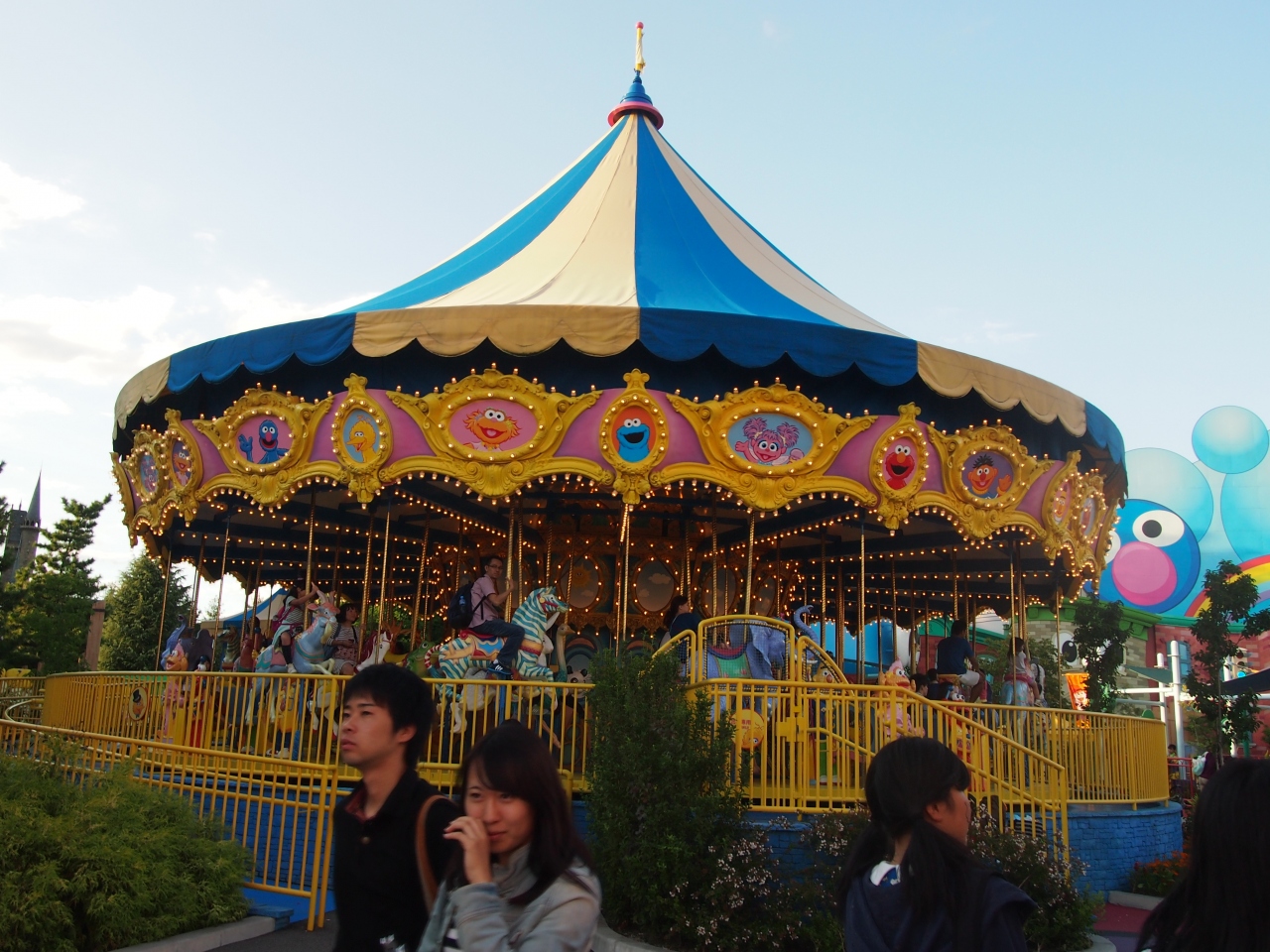 ここのエリアは比較的乗り物がすいており、待ち時間も少なくて乗ることができます。