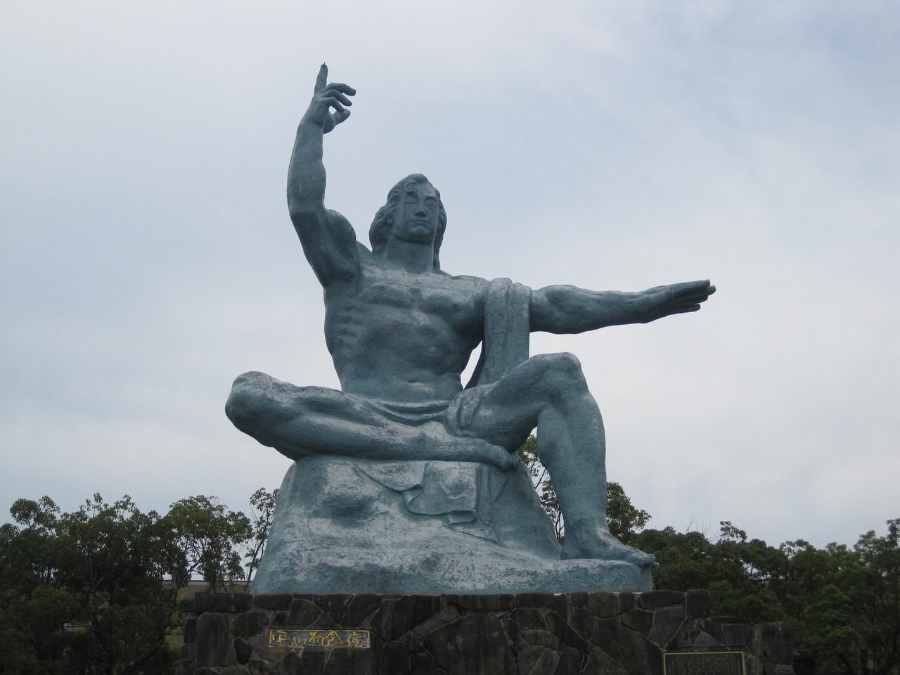 いつも8月にテレビで放映される平和祈念像。神の愛と仏の慈悲を象徴し、原爆犠牲者の鎮魂と永遠の平和を願い、天を指す右手は「原爆の脅威(長崎の過去)」を、水平にのばした左手は「平和(長崎の未来)」を示し、軽く閉じた瞼は戦争犠牲者の冥福を祈っている、とのことです。とても広い公園に、泉や、いろいろな平和を祈るモニュメントが立ち並び、一番奥までいくと、平和記念像にたどりつきます。右手と左手と瞼の意味を重く感じながら、平和を祈らずにはいられない場所でした。世界中の人がこの地を訪れて戦争と平和について真剣に考える時間を持ってほしいと思います。
