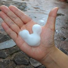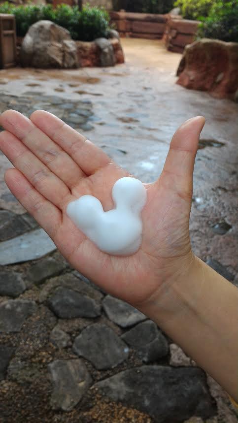ディズニーランドのクリッターカントリーにあるスプラッシュマウンテンの奥の方に行くと手洗い場所が設置されました。そこでは泡せっけんがあり、プッシュするとミッキーの形の泡になるのです。キャストの方が丁寧に泡を手に作ってくれます。