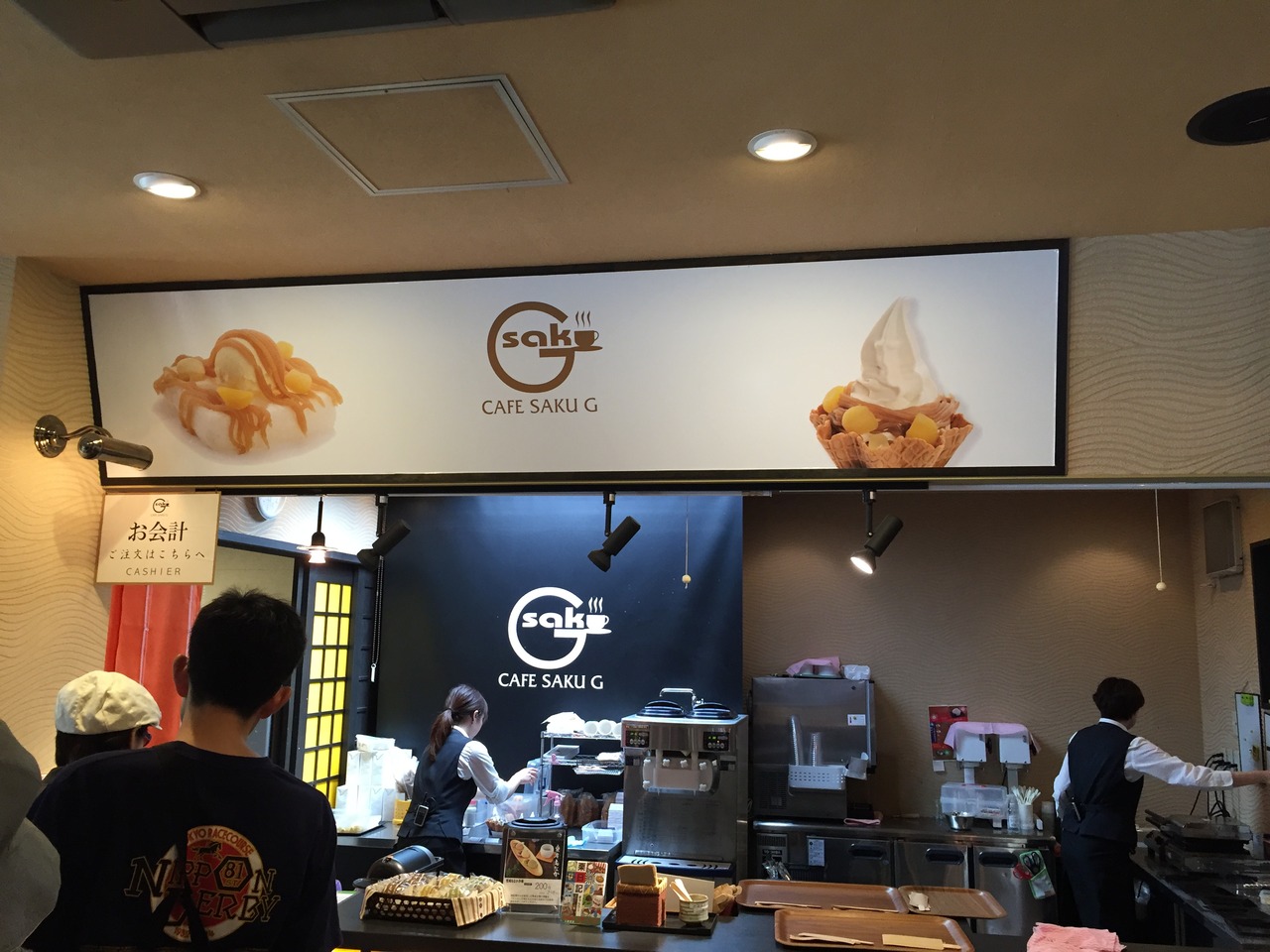 店内に入ると、右手は決まっての甘味のお菓子、お土産を販売、左手は、CAFE SAKU Gと云うソフトクリーム/アイスクリームを販売しているお店があります。