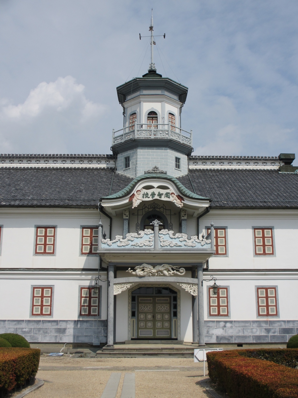 松本城から北へ歩いて10分ほどの所に保存されている、明治時代初期に造られた和風と洋風が混ざり合った擬洋風建築の小学校です。木造2階建てで、校舎中央には風見を配した八角塔がそびえ、教室内にはステンドグラスも備え付けられています。現在は博物館として、江戸時代から現在までの教科書や教育資料が展示されています。国の重要文化財です。