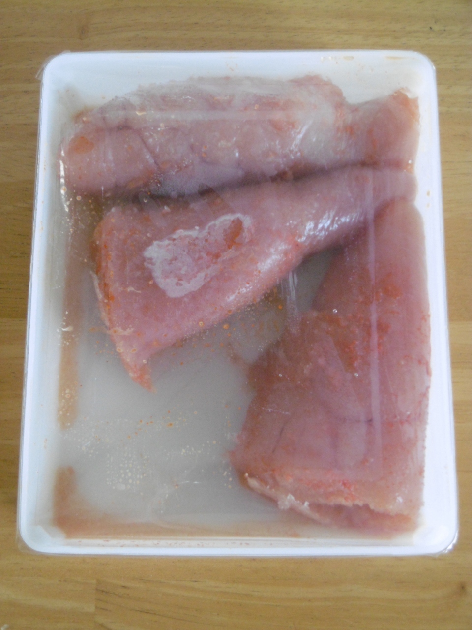 形と大きさがほぼ同じの明太子はきれいですがお値段が、自宅用だしって時には家庭用が便利ですね。