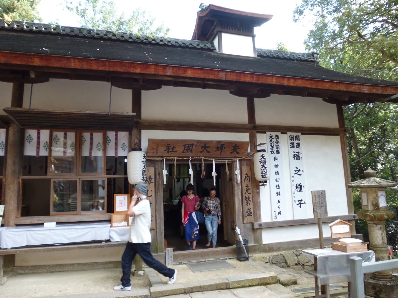 春日大社、南門から出て、木々の中を歩いていくと、多くの神社があります。その中に、夫婦大國社があります。恋愛成就のパワースポットとして、ガイドブックなどでも紹介されているせいか、ハート形の絵馬が多く掛けられていました。