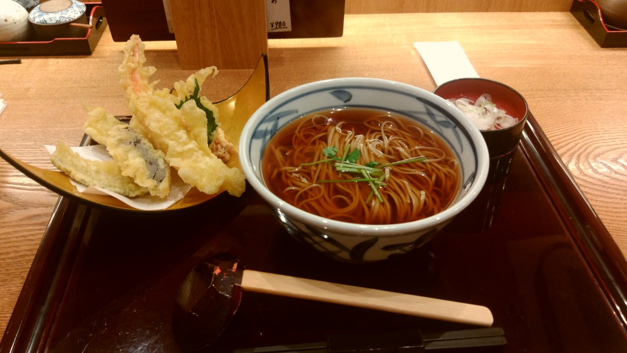 「温」と「冷」で悩みに悩んで温かい天ぷら付のそば(少なめ)を注文。