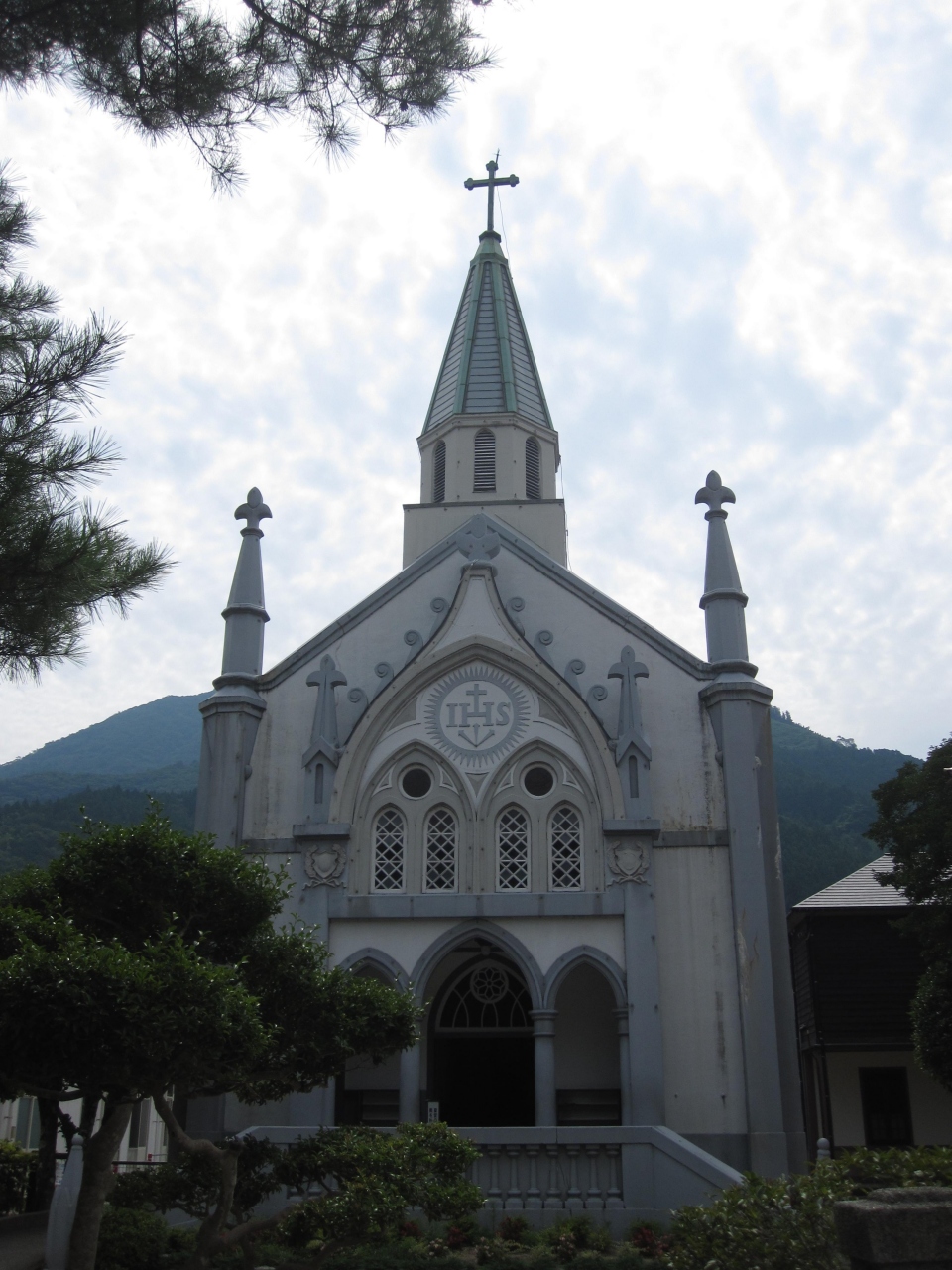 こちらの教会は武家屋敷が並ぶ殿町通りにあります。ゴシック様式によって建てられた畳敷きの教会です。鮮やかなステンドグラスは印象的でした。教会内は畳敷きで、靴を脱いで入ります。敷地内にh乙女峠の資料館もありました。