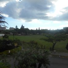 大きなお城のような建物があります。