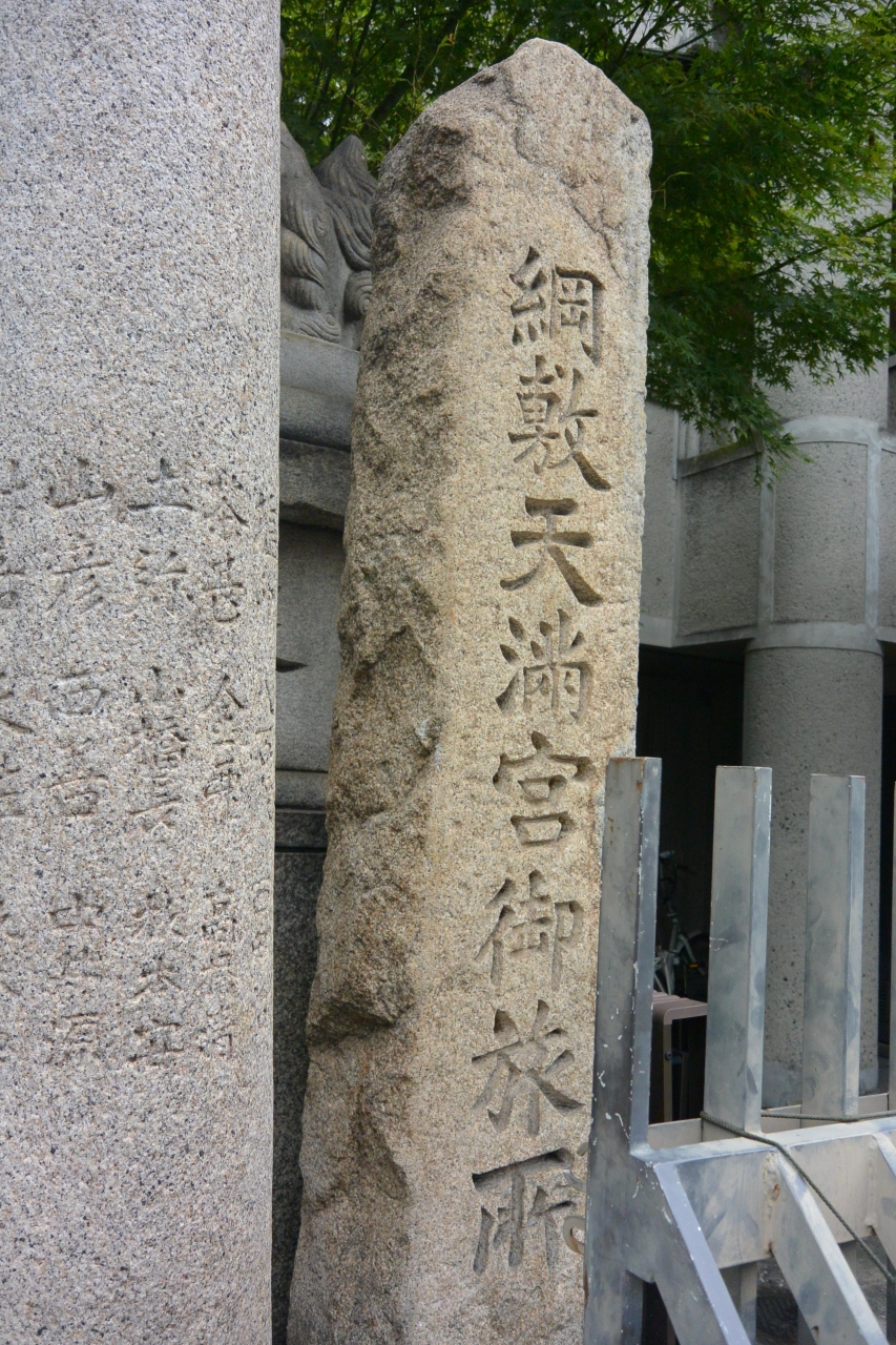 賑やかな茶屋町の一画にあります。本社はここから少し離れた北区神山町にあり、その御旅所なのですが、元々が綱敷天神社の南にあった梅塚天満宮であることから、鳥居や社殿を持ったひとつの神社として建立されたそうです。周囲が平地なのに、なぜわざわざ土地を盛って社殿を高いところに持ってきたのか不思議でしたが、水害を考えてのことのようです。