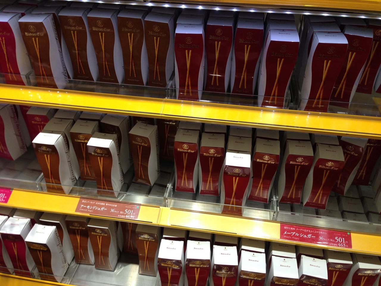 前回は金曜日の午後4時半頃で売り切れていたので、今回は午前中に来たところ20分ほどの待ち時間で購入できました。フレーバーシュガーのかかったプリッツタイプが6種類、1箱税込み500円でスタイリッシュな箱入りで手軽なお土産に便利です。