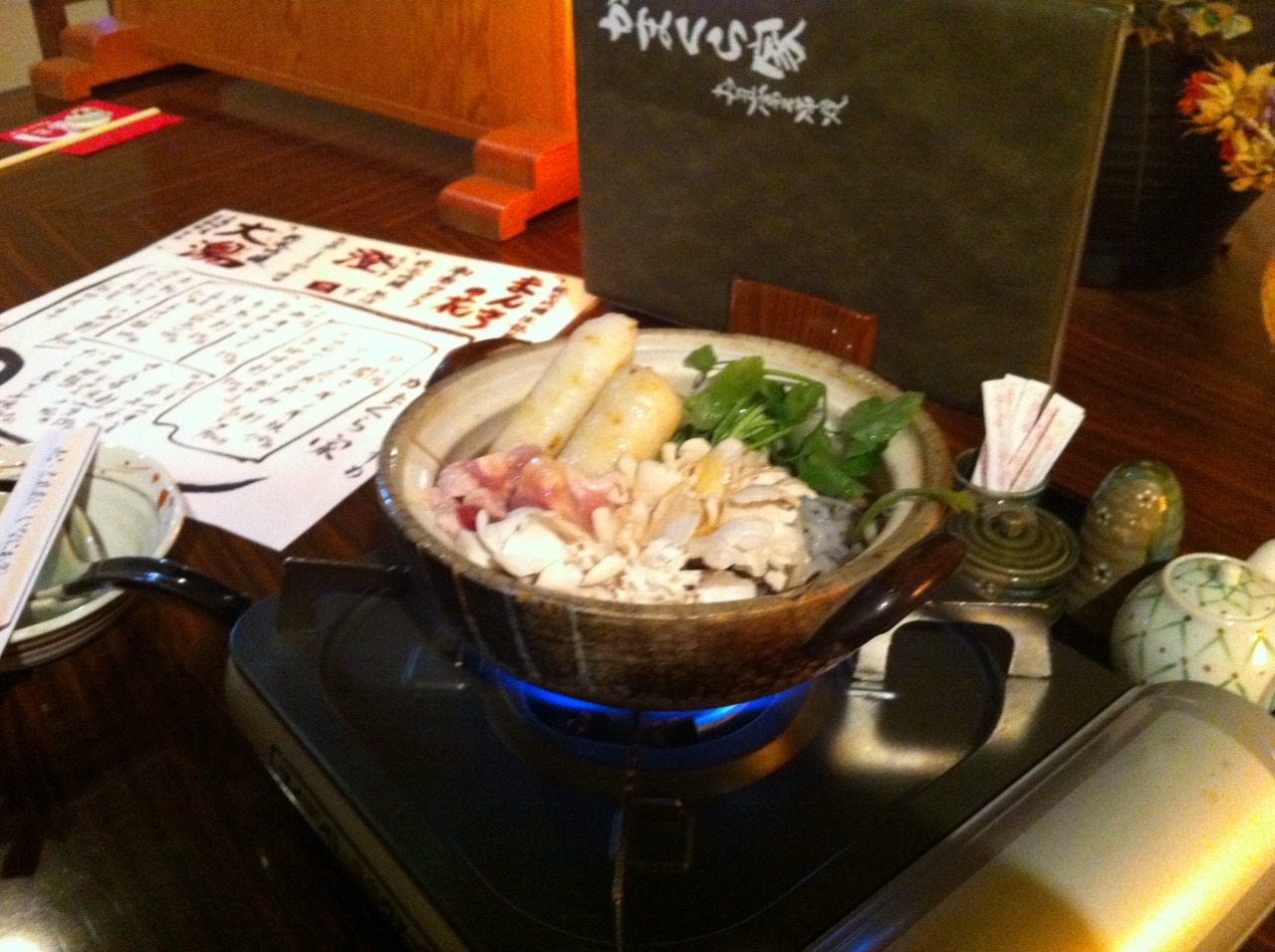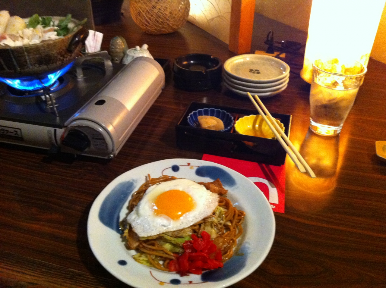 秋田駅から向かって旭川を渡って1本目の道、川反通りの飲み屋街にある居酒屋的なお店です。飯を食うのメインで探していたのですが、あまり店も無く 歓楽街として栄えていた川反通りにいけばなんとかなるかと探していたところ、大きな看板で観光客を狙う 1人前きりたんぽ鍋半額1800円が900円!の文字が出ているので ついつい入ってしまった。。1人前というのも珍しいですが、一応居酒屋設定のようで 酒を飲まないでも おとうしが出てきて 数百円お会計に追加されます。 きりたんぽ鍋は素朴な感じでお出汁もおいしくいただけましたが、少し量が少なかったので 横手焼きそばも頼のみました。 こちらも マー 観光客としては、OKって感じです。