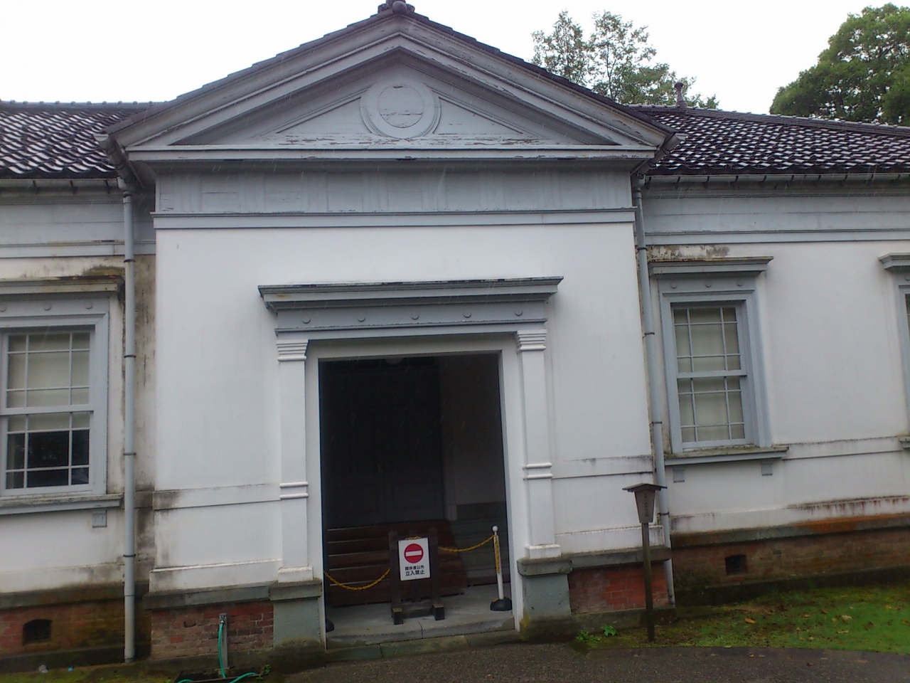 金沢城の二の丸のあたりにあります。金沢城を散策していて偶然に見つけました。陸軍の施設で、日清戦争の後に金沢城の中のこの場所に建てられたそうです。金沢城は太平洋戦争で戦災を受けなかったために、現存して残っています。白を基調とした建物です。