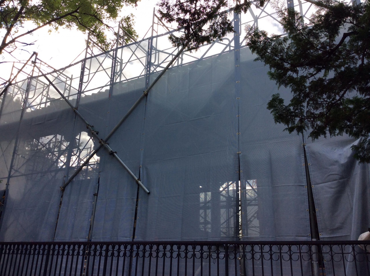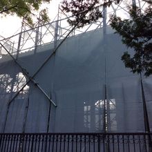 増上寺から御成門方面へプリンスホテル駐車場の脇にあります。もともとは徳川将軍7代の家継公霊廟の門でした。本来はすぐに気づくのでしょうが修理中。気づかずに通り過ぎそうになって思わず二度見。戦火を掻い潜り焼失から免れたとはいえ、かなり傷んでいたのでしょう。