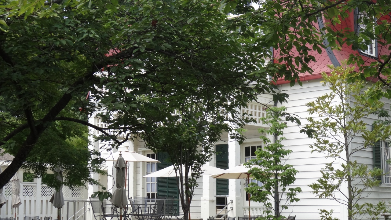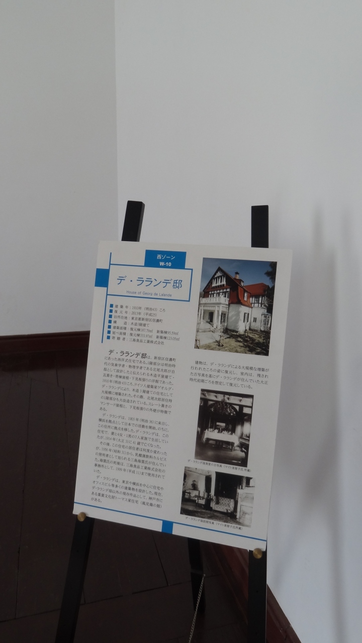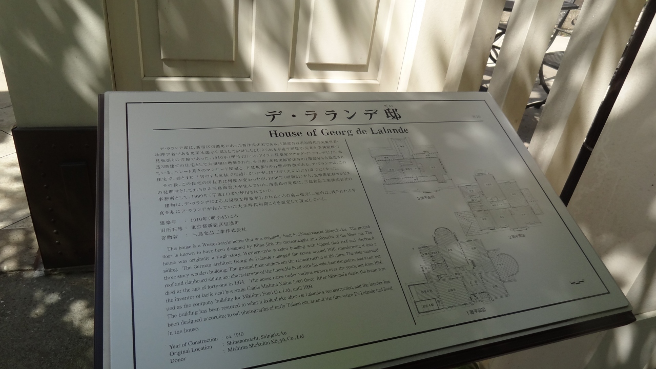 ここのデ・ラランデ、JR中央線武蔵小金井駅からバスで5分、小金井公園西口で降りて五分くらいの江戸東京たてもの園の中にあります。武蔵野茶房というレストラン兼カフェが一階に入っていて、中で食事ができます。とても洋館らしい穏やかな木漏れ日が差し込んでいて、中での休憩は格別です。