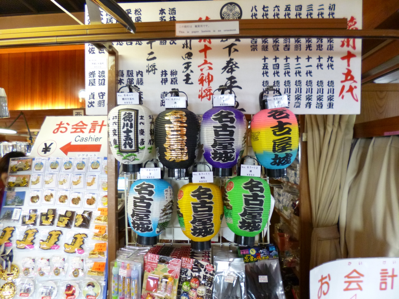 名古屋城 天守閣展望室から名古屋市内を見下ろす。その先に山が見えるはずだが天気が悪く残念だった。ぐるっと一周巡ってから土産もんやにいった。昔の観光地に必ずあった提灯が売っており懐かしい。おそらく外国人観光客のためであろう。