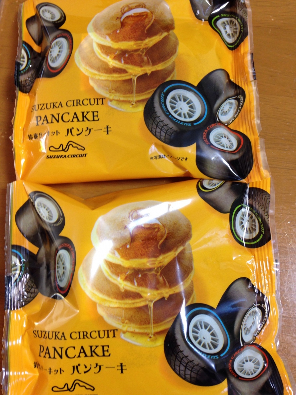 鈴鹿サーキットを見に行ったパパからのお土産です。子供には110cmのTシャツ、私にはパンケーキでした。鈴鹿っぽくなくふんわりした生地の中にマーガリンとメイプルシロップが入っていました。お土産もいろんな種類があるそうです。おいしかったです。子連れで見に行っている人も多かったみたいです。
