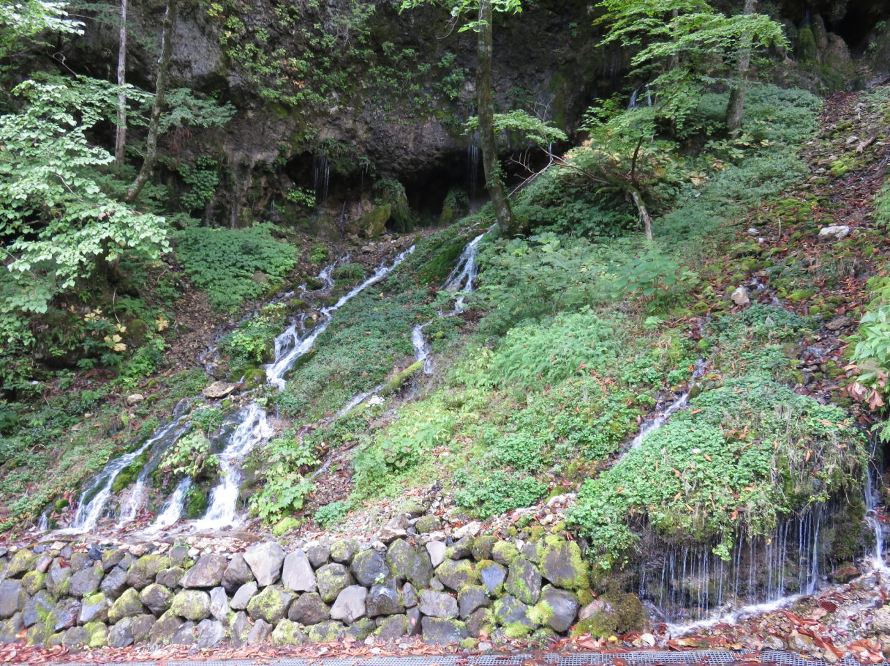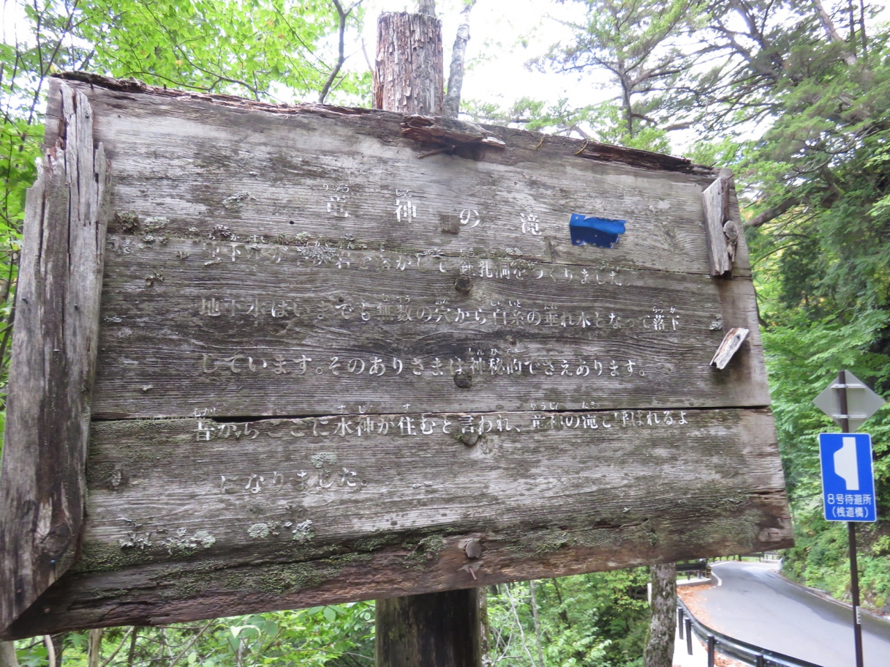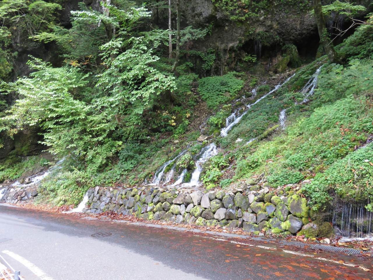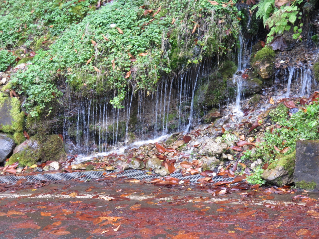 何回か白骨温泉に来ていますが、全く気が付きませんでした。観光案内所へ上る手前に駐車スペースが有る事は知っていましたが、対面にある流れが滝だったのですね。滝のイメージは滝壺があって川に繋がっている・・・此方は 滝壺無しで道路の側溝に流れ込むみたいな感じです。インパクトは有りますね。