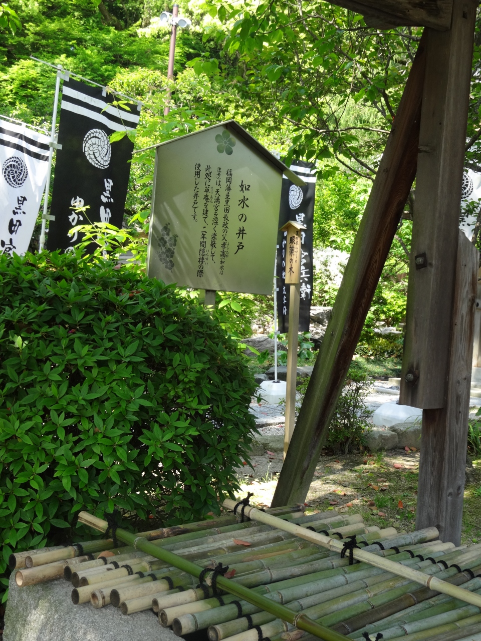 周辺には「飛梅の木」「梅の種納め所」「包丁塚」「黒田家ゆかりの目薬の木」「如水の井戸」など、興味深い見どころがたくさんあり、飽きませんでした。
