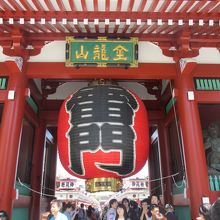浅草のシンボルとなっている門で、観光ポスターにも必ず出ています。門の中には風神像と雷神像が安置されています。門の中央には高さ3.9m、幅3.3m、重さ700kgの提灯がかけられています。観光客の待ち合わせ場所になっていて、提灯の前で写真を撮る姿がよく見られます。