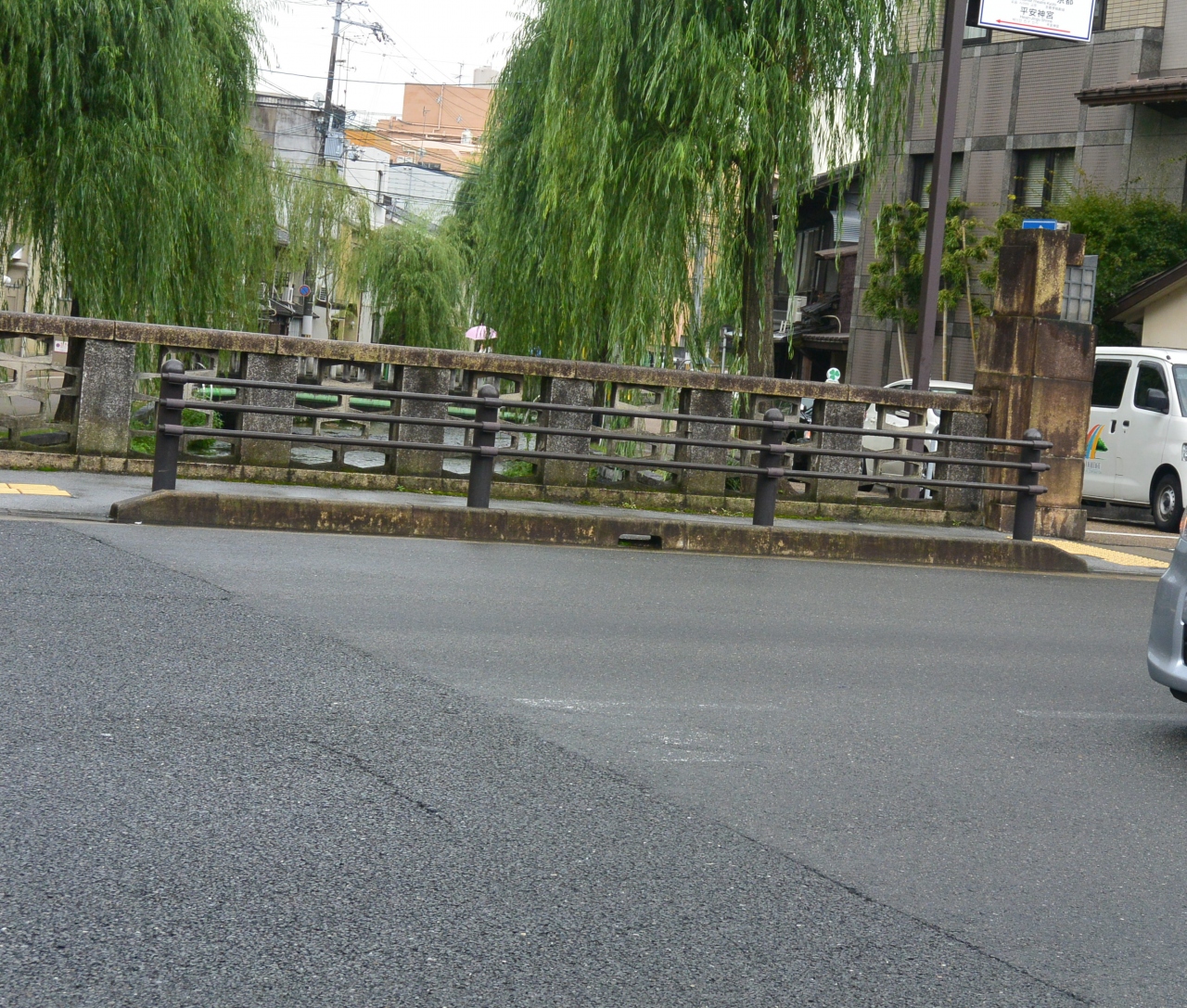 三条京阪から三条通りを東山へ向かうと、途中白川を渡るところがあってその橋が白川橋でした。小さな古い橋ですが、白川の両岸に植えられた柳が風情があります。この川が流れて行った先が重要伝統建造物群で有名な祇園白川地区になります。