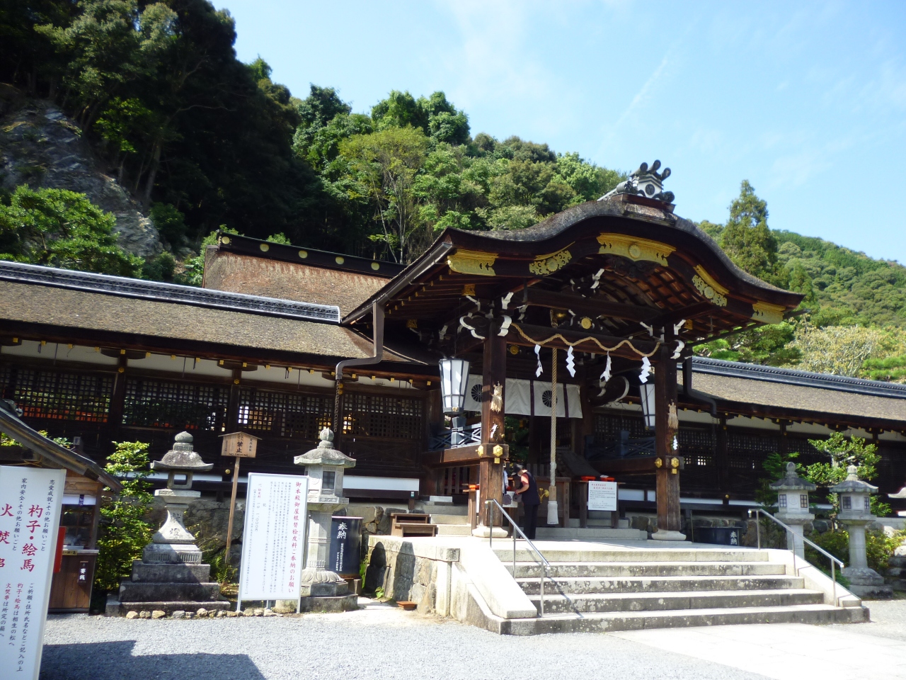 おおやまぐいのかみをお祀りしています。京都で最古の神社です。派手ではないですが、どっしりとした立派な社殿から、歴史を感じました。酒造りの神様として有名で、酒の資料館がありました。裏手には滝があって、清らかな水が流れ落ちていました。