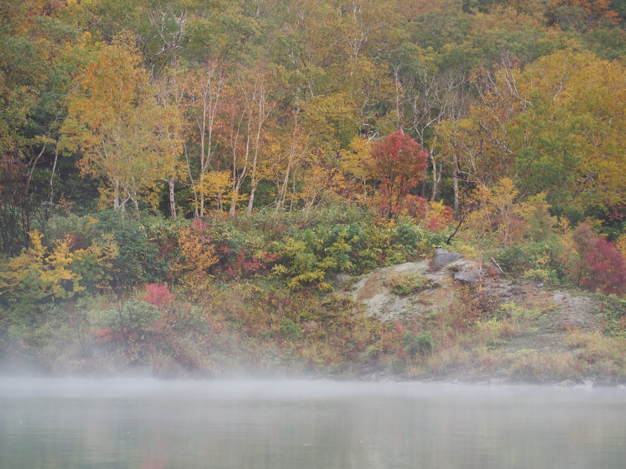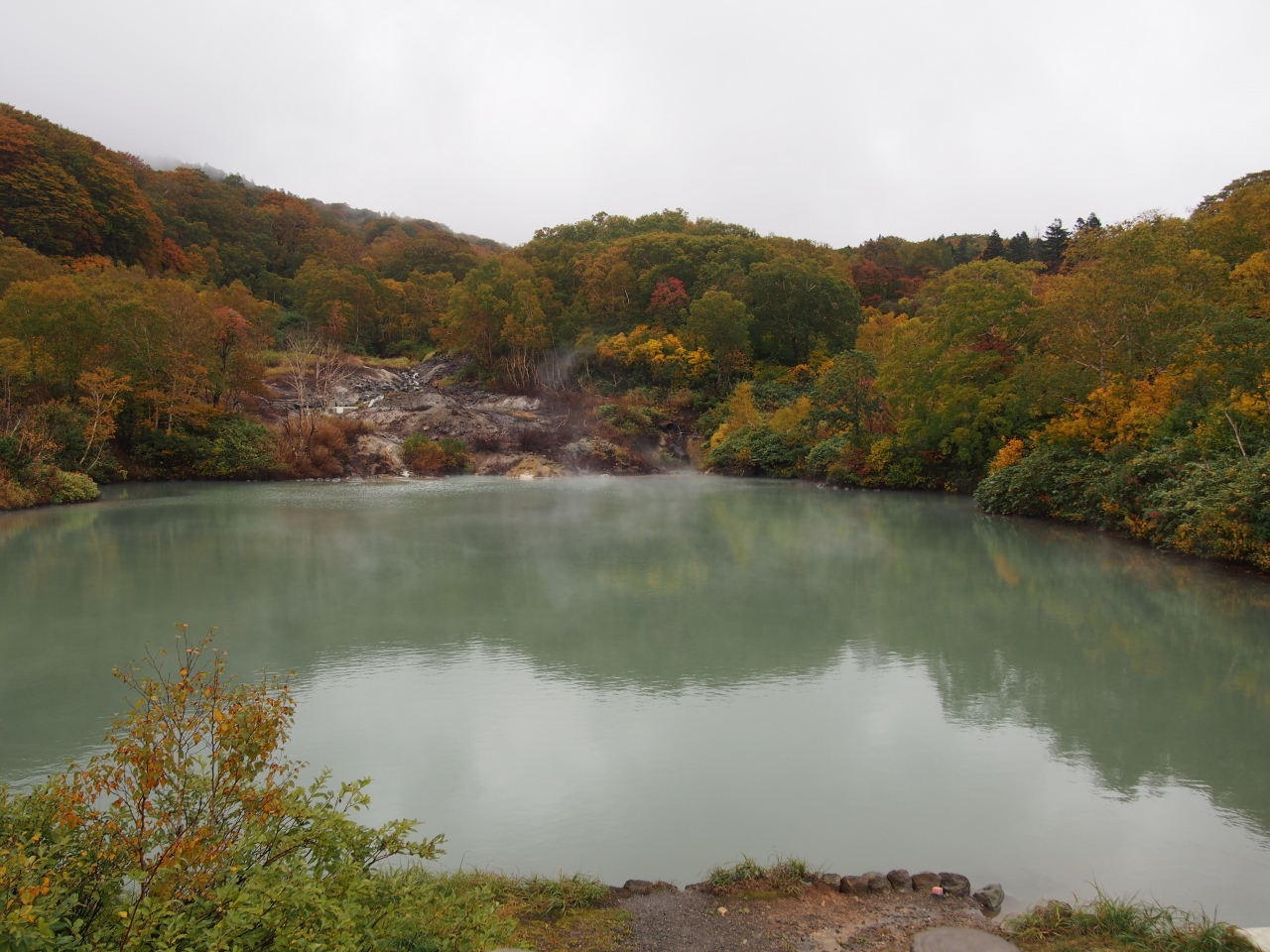 沼の水はぬるま湯で 沼からあがる湯気と紅葉がマッチしてきれいでした。