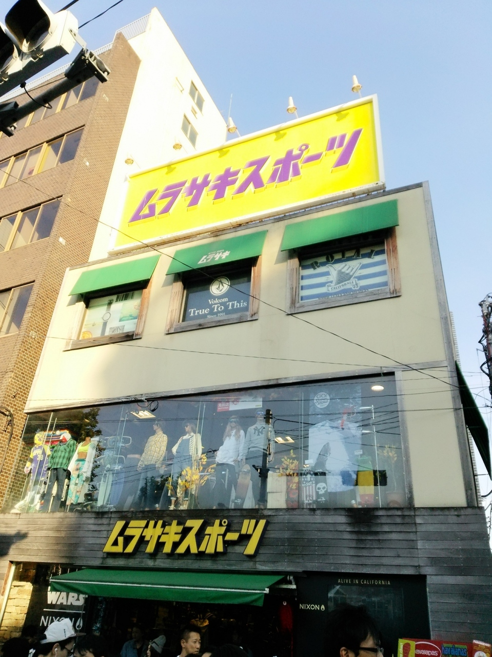 竹下通りを抜けて、明治通りを渡ったところにあるムラサキスポーツです。このムラサキスポーツはかなり前からこの場所にあります。近年は郊外型の大型スポーツ店が勢いづいていますが、このお店は好立地に恵まれていることもあり、店内はかなり混んでいました。