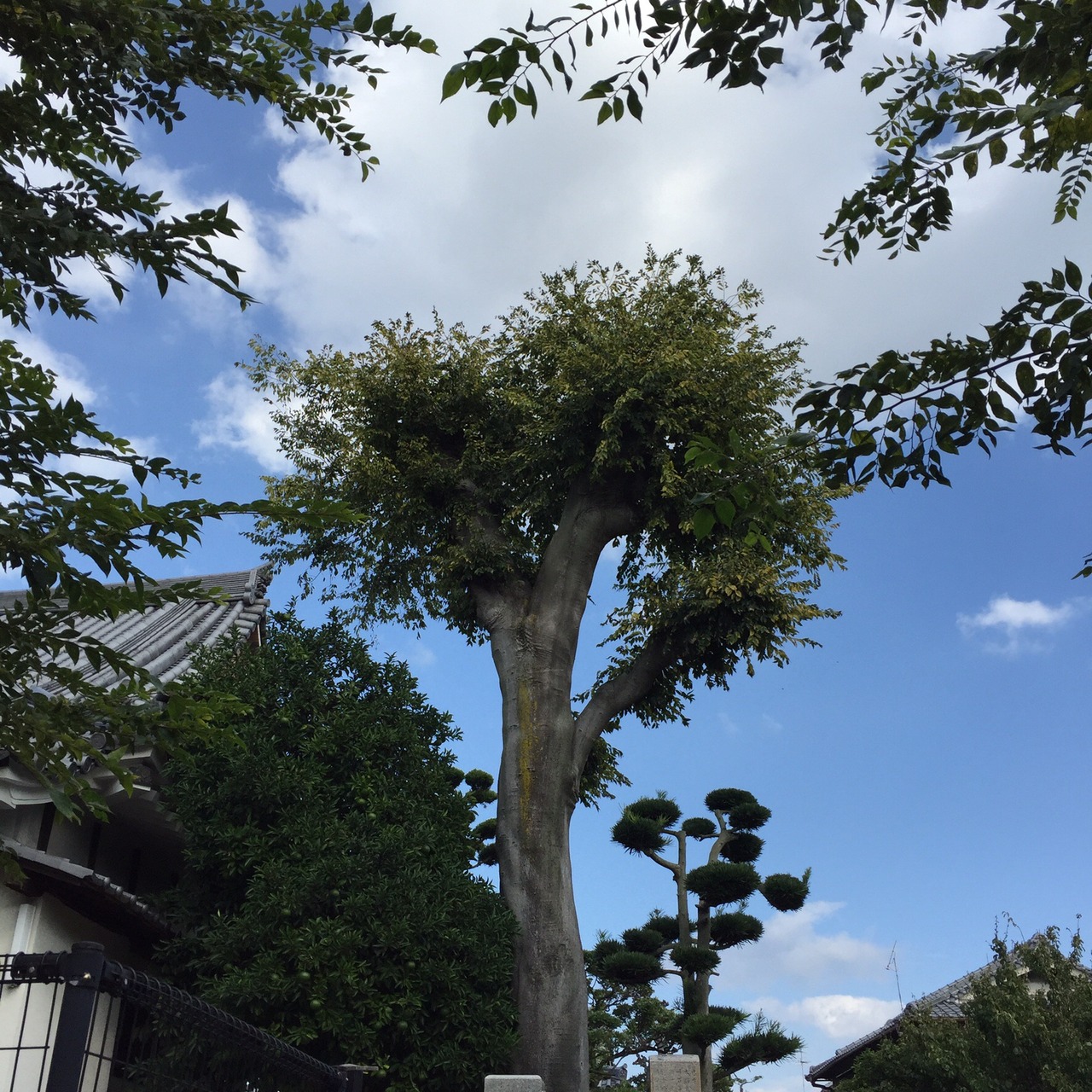 すごい変わった形で伸びており歴史を感じさせます。もう一本変わった形の木もあり、相当古いお寺のようです。