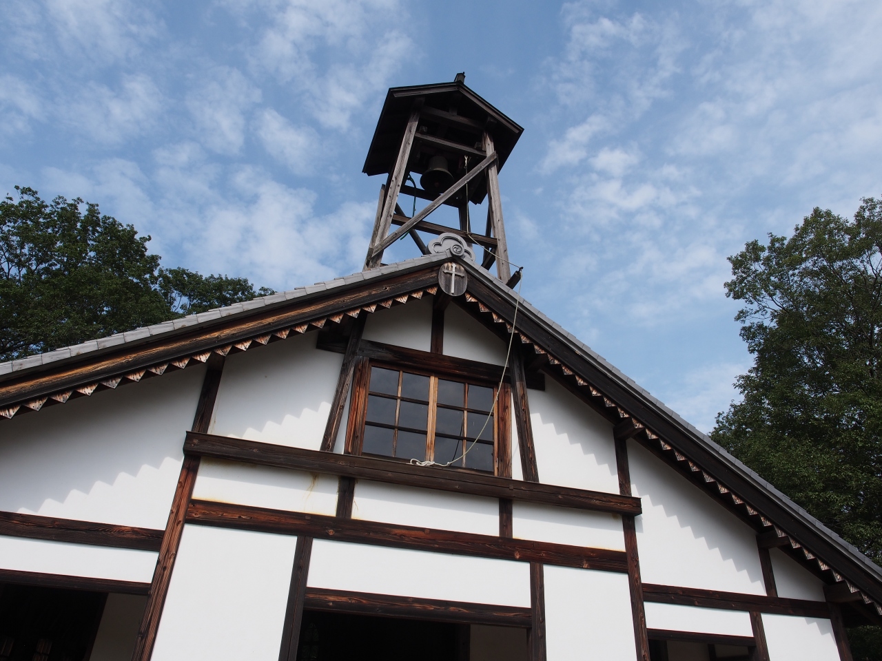明治村に移設されている教会は4つあり、そのうちのひとつで、ぱっと見たかんじは教会らしくない和風な建物です。