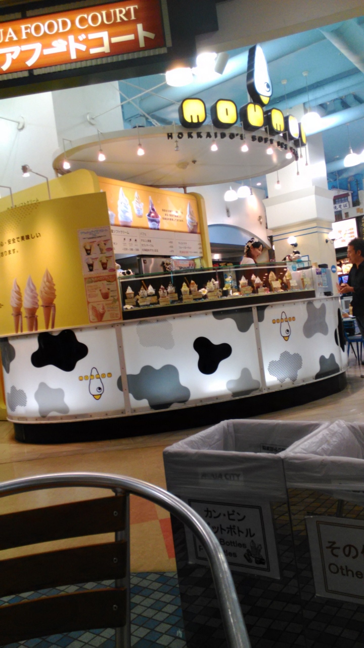 お台場を観光した際、アクアシティのフードコートにあるこのお店でアイスクリームをいただきました。夜7時ごろだったせいか結構空いていて座る席はいくつでもありました。濃厚なソフトクリームでとてもおいしかったです。