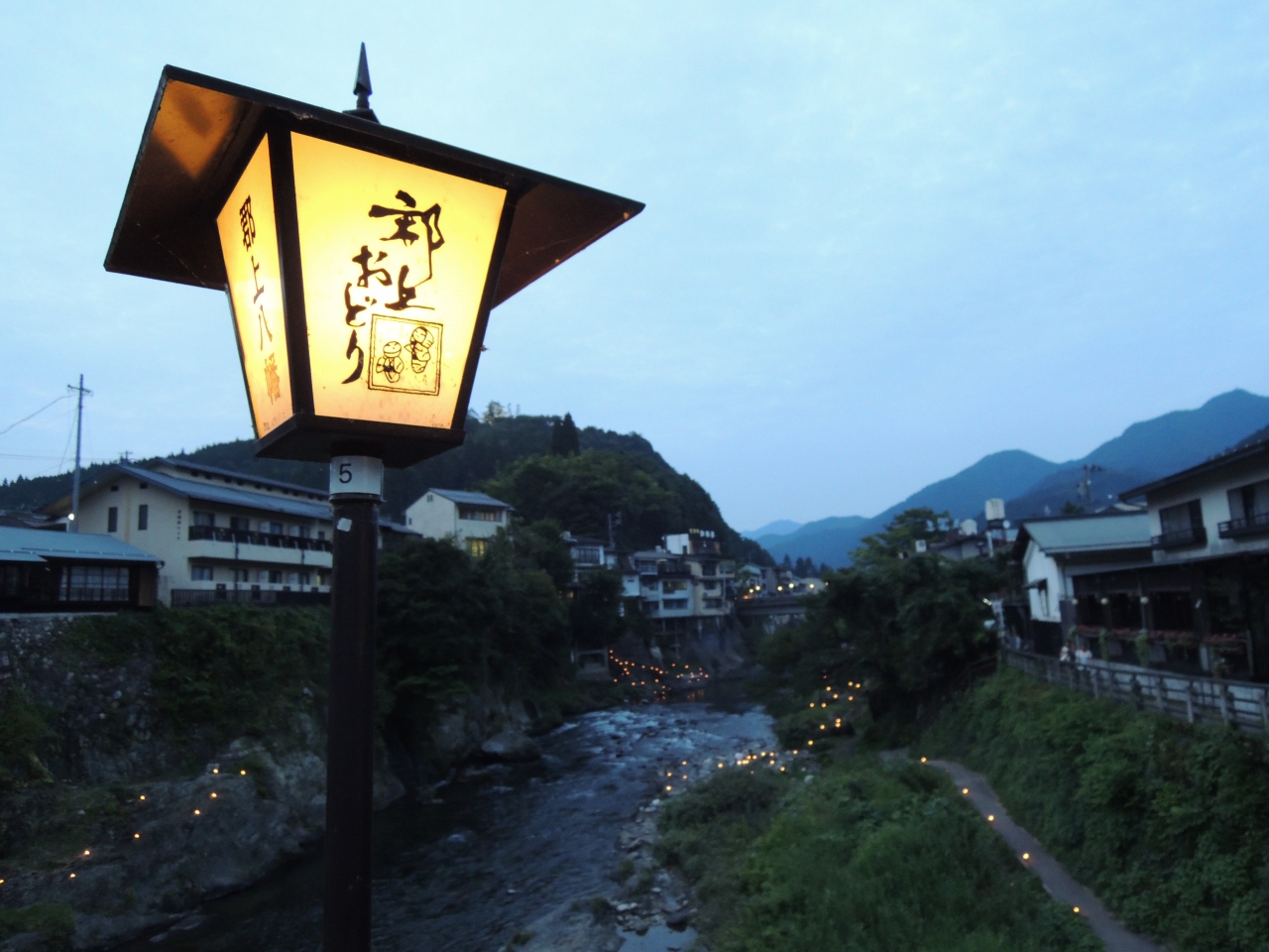 夕方になると川べりに火が点って幻想的な風景を眺めることができたりします。