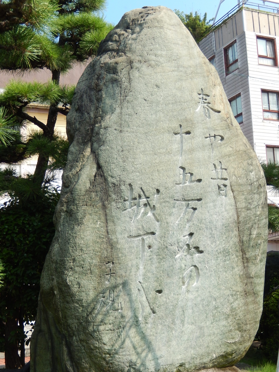 松山駅のロータリー横にあるのは正岡子規の大きな句碑で、「春や昔 十五万石の 城下哉」と書かれています。日清戦争の従軍記者として戦地に赴く直前に詠まれたもので、「坂の上の雲」の第1章の「春や昔」はここからとられています。これを見た瞬間、松山に来たなぁと感じました。