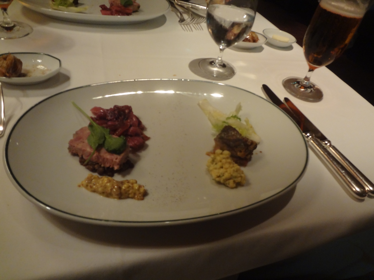 パークハイアット東京内にあるジランドールでディナー。アラカルトでと思っていたのですが、5000円とリーズナブルなセットがあったのでそれをオーダーしました。料理の基本は前菜とメイン。それにデザートとコーヒー、それに前菜の前にスターターとしてアミューズが出てきました。美味しいパンも食べ放題だし、オーダーした時は少し足りないかなと思ったたのに、終ってみればお腹いっぱいでした。前菜、メインとも2品の中から1品選ぶので、アラカルトと比べると選択肢はかなり狭まりますが、料理はとても美味しいし、二人だったらそれぞれをチョイスしてシェアする方法もあるのでお得です。それにこのクラスでこの値段はかなりリーズナブルだと思います。