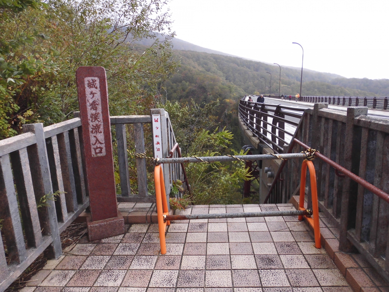 橋の横に遊歩道への階段があったのですが 通行止めになっていました
