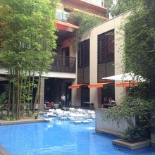 シルバーウィークに休みを付けた平日に訪問。パティオにプールがあり、オープンダイニングで開放感があり、雰囲気がとても良いです。ランチのメインをサーロインとスズキのジェノバソースにしました。