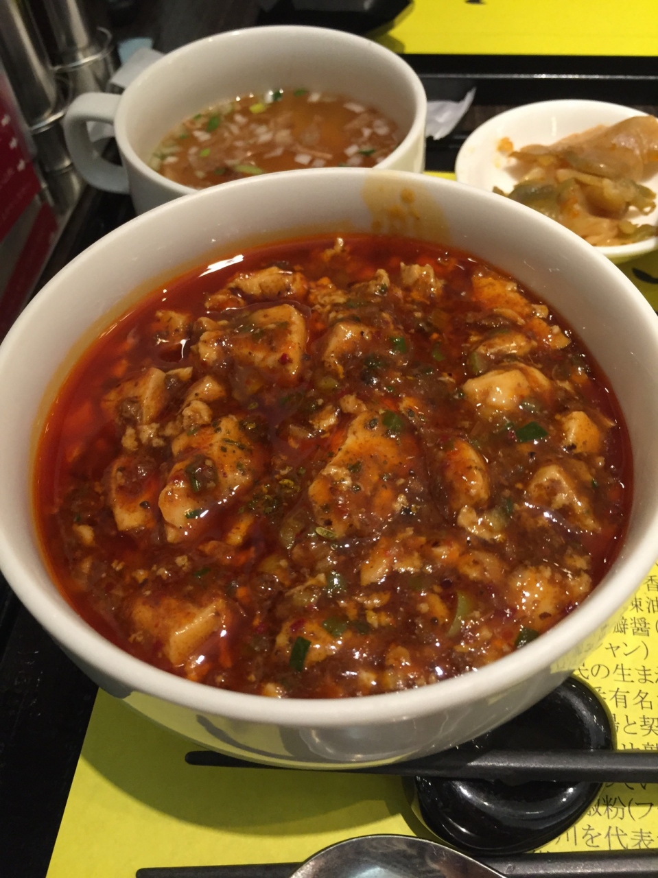 麻婆豆腐を注文しました。麻婆豆腐、ごはん、ザーサイ、スープがついていて、ごはんとスープはお代わり自由でした。麻婆豆腐は辛くて美味しかったです。ごはんが進みお代わりしてしまいました。お昼過ぎだったので並ばずに入れました。オススメです。