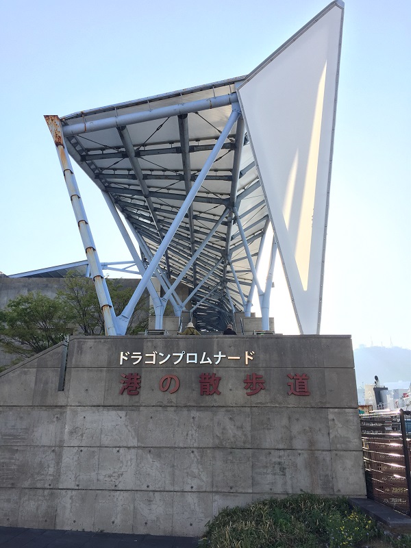長崎の港沿いを散歩できるように屋根がついていましたけども歩いている人は誰もいなかったですね。少し台のようなところをあがるんで気がつかないのかもしれないですね。