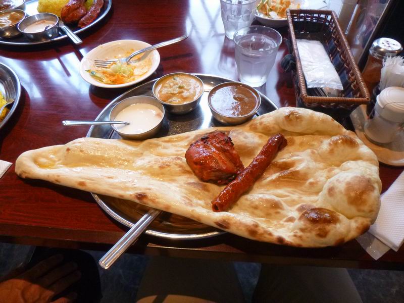 スペシャルセット(1,050円税込)をオーダー。内容は、野菜カレー、マトンカレー、ナンまたはサフランライス、タンドリーチキン、シークカバブ、サラダ、デザート、ドリンク(5種類くらいから選択)です。ナン・サフランライスはおかわり自由。最初にナンを頼んで、おかわりでサフランライスということも確かできたと思います。