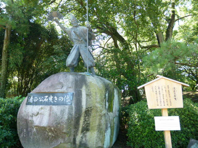 今日は名古屋城の散策です。正門から入って西の丸から一周してきました。表二之門から東門方向に「清正公石曳き像」はあります。加藤清正は、ここ名古屋城の天守閣の一部の石垣の工事を担当しましたが、石の上に乗り気合いを入れ短期間で完成させた、とのことです。ここでも加藤清正の偉大さが伺えますね。