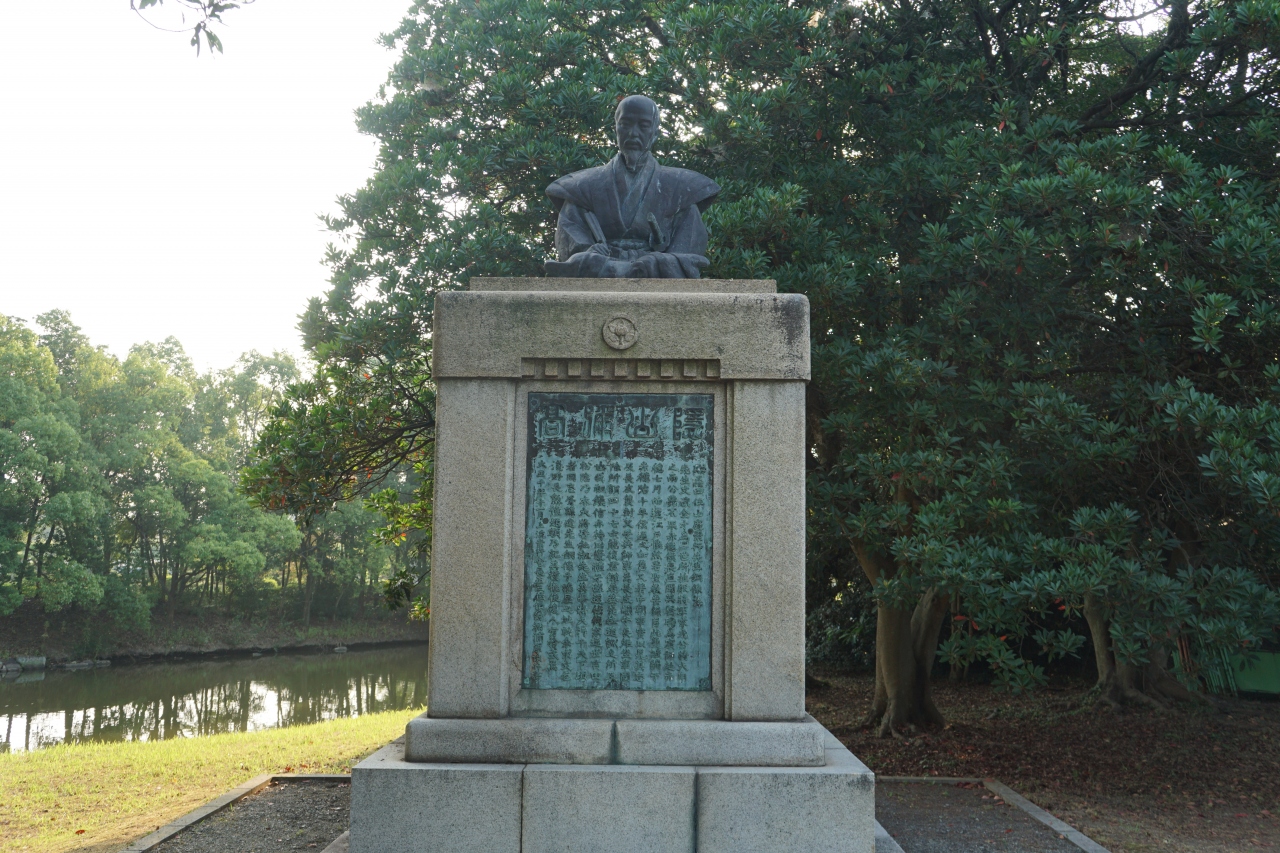 山鹿素行は会津の出身ですが、徳川幕府公認の朱子学を批判したことで赤穂藩にお預けの身となりました。しかし、軍学を始め、幅広い教養の持ち主でもあり、赤穂藩士の教育を担い、大石内蔵助も門弟の一人だったのだとか。討ち入り事件の成功により、逆に、 山鹿素行の評価が高まるといった結果ともなって、赤穂と山鹿素行の関係は深いものとなったようです。銅像は赤穂城の本丸に至る手前。赤穂との関係を記念するモニュメントとなっています。
