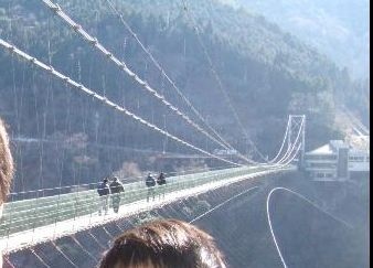 綾の照葉大吊橋や交野の星のブランコも結構すごかったですが、やはり景観のすごさ、長さ、怖さ等を考えるとこの谷瀬の吊り橋かなと思います。とにかく遠いです。今でこそ国道168号線もだいぶ整備されましたが、14年位前に走ったときはくねくね道に子供が酔って吐いたりしたものでした。さて谷瀬の吊り橋ですが、長さ297メートルの高さ54メートルです。深い山々とはるか谷底の清澄な十津川を見ながら渡るというシチュエーションもいいのですが、何より怖いのは風で吊り橋が揺れる中を渡るということ。今回は風が強くかなり揺れましたので渡り終えたときは気分が悪くなって少し休憩しました。(船酔いのような状態です。)なめてはいけません。本当に揺れるのですから気をつけて下さい。それにしてもこの吊り橋が単なる観光用の橋ではなく、あくまで生活つり橋であり通学路としても使われているということは驚きです。きっと山の子は肉体的にも精神的にも強くなるのでしょうね。ちなみにこの橋は一度に20人以上は渡れないとのことです。