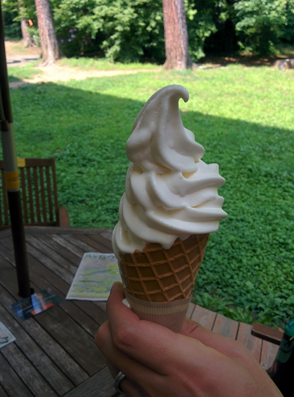 チーズケーキのソフトクリームと白桃パフェをいただきました。