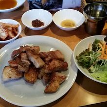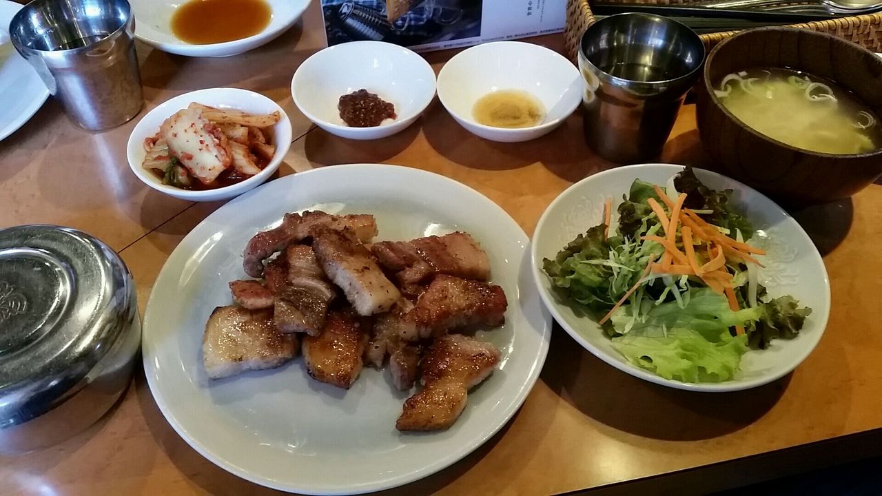 新橋ランチパスポートを使って初めて行きました。サムギョプサル定食が1,000円のところ半額!写真をみた感じ、脂っこいかなーと思いましたが、実際は赤身の部分もしっかりついたお肉で、キムチ、スープ、サラダまでついてすごいお得感でした!ランチパスポートは12:30からなので要注意。15食限定で5分前くらいから一気に行列ができて、すぐに完売してました。