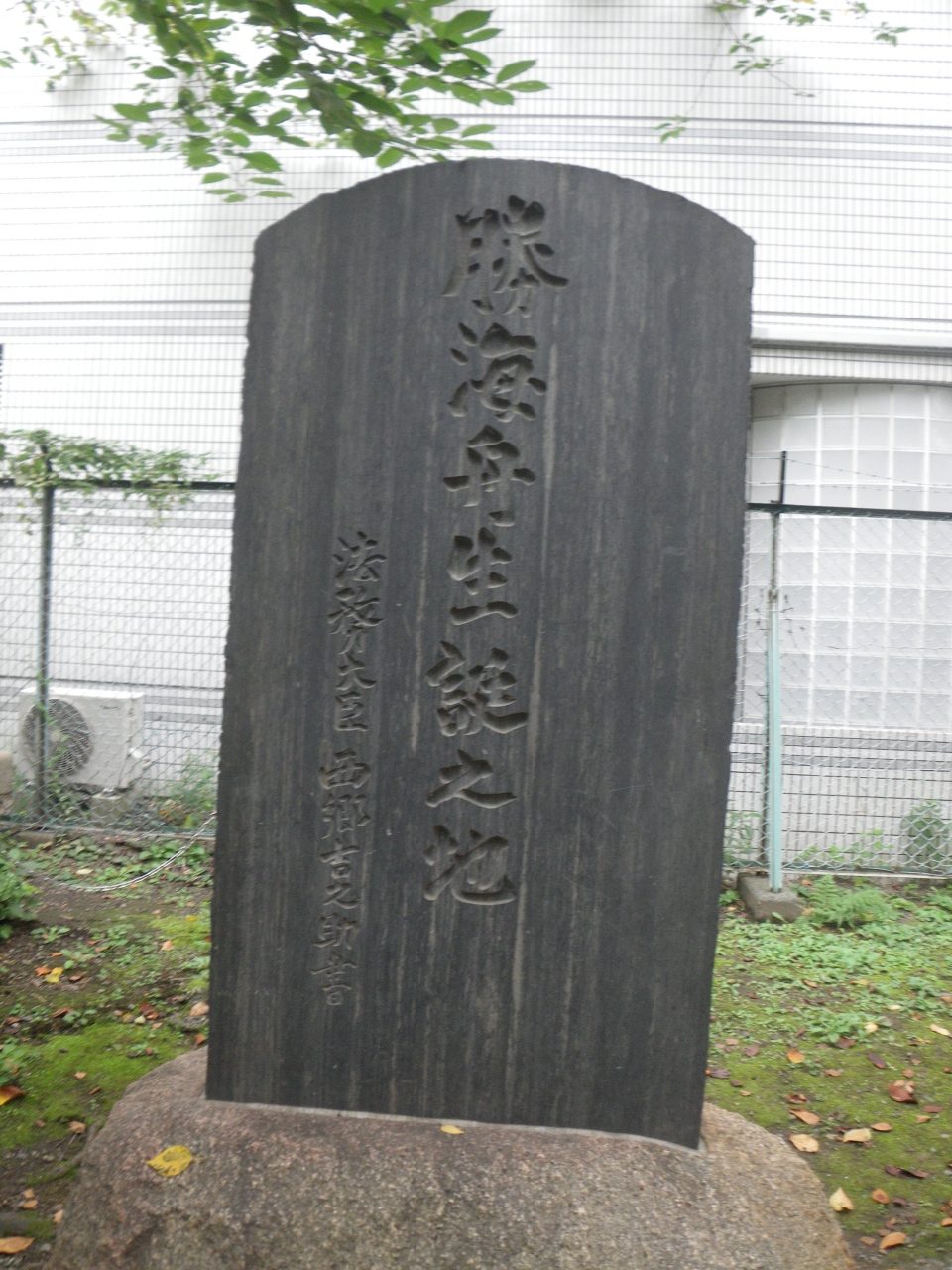 両国駅から徒歩5分位の両国公園の隅にひっそりと石碑と案内板がありました。幕末から明治にかけて活躍した勝海舟は、父方の実家で誕生し幼少期を過ごしたそうです。両国公園は父方の実家である男谷家の跡地になります。