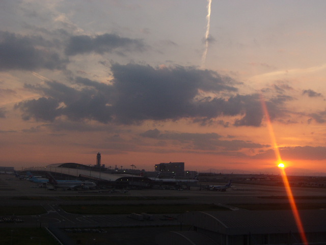 今回は午後の便で関空に帰国して、夕暮れ時間帯を狙ってスカイビューにアクセスしてみました。ちょうど方角的にスカイビューから滑走路や第一ターミナルを望む方向が西側になりますので、飛行機やターミナルビルと夕陽とのコラボがとても美しくて感動しました。ただこの時間帯はカップルが多いので、一人で行かれるとちょっと切ない気持ちになるかと思います(汗)。