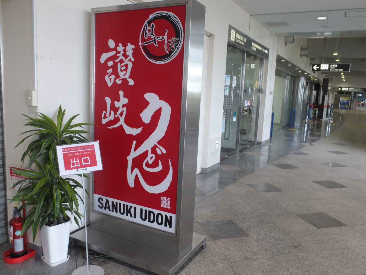 空港の1階、飛行機が到着してロビーに出たなら右サイドである。はやし家製麺所は土産屋通販がメインだったのが、十店舗として出した一号がここである。小麦や水にこだわったうどんの味をあじわうならぶっかけだが、どうしても肉釜玉うどんを食ってしまう。