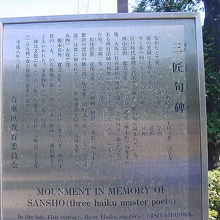 外国人も多く訪れる観光地、浅草の「浅草寺」境内にある歌碑です。江戸時代前期を代表する俳人三匠の句が刻まれていて、中でも芭蕉の「花の雲鐘は上野か浅草か」は有名でしょうか。周辺にはさまざまな句碑があってそれぞれ見応えがあります。